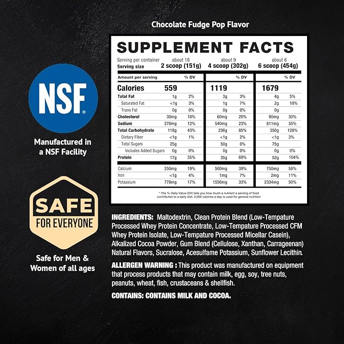 MAN Sports - Dirty Bulk: Chocolate Fudge Pop High Protein Weight Gainer Powder with 52g of Protein