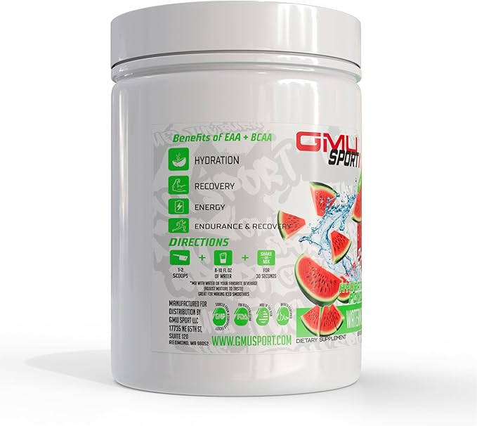 GMU SPORT - BCAA & EAA Hydration & Recovery Powder -Full Essential Amino Acids Profile Hydration Powder for Energy, Fast Recovery & Endurance - 40 Servings, Electrolyte Drink for Athletes (Watermelon)