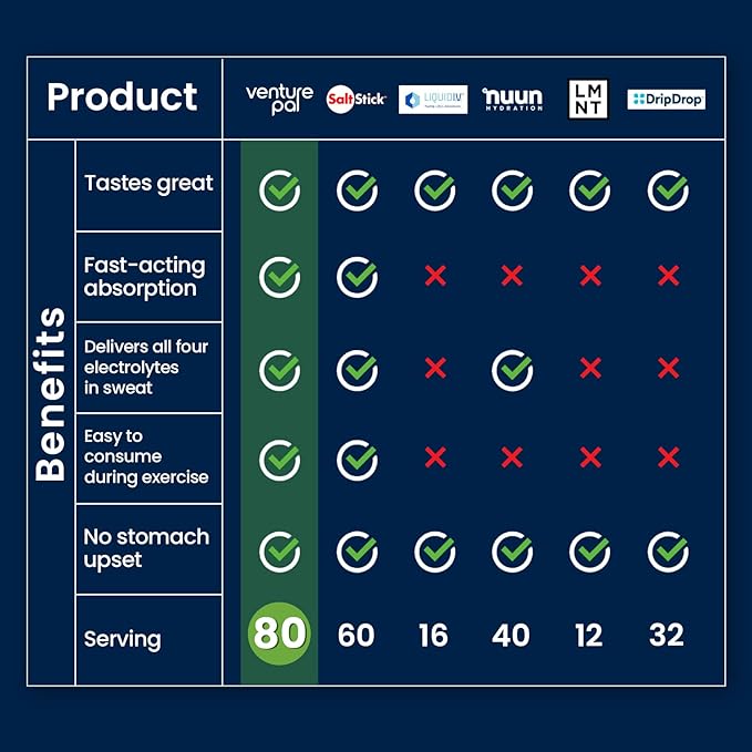 • TAKE HYDRATION ON-THE-GO: Venture Pal's electrolyte tablets are perfect for active lifestyles, from gym sessions to hikes or busy days. Compact and convenient for athletes like runners, cyclists, and golfers, they fit easily in your bag—or even make great stocking stuffers this holiday season