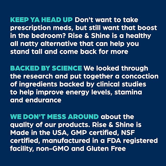 • KEEP YA HEAD UP: Rise & Shine is an all-natural performance and stamina supplement for men that can help you stand tall and come back for more.