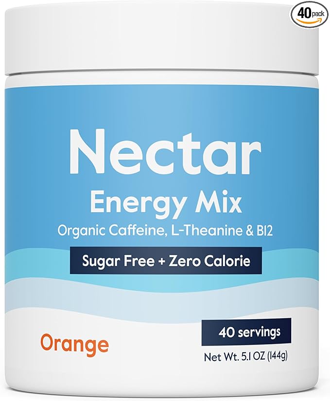 Nectar Energy Booster - Organic Caffeine, B12 & Electrolytes - Sugar Free & Zero Calorie – Healthy Coffee, Energy Drink & Soda Alternative – Hydration & Energy Supplement (Orange 40 Serving Tub)