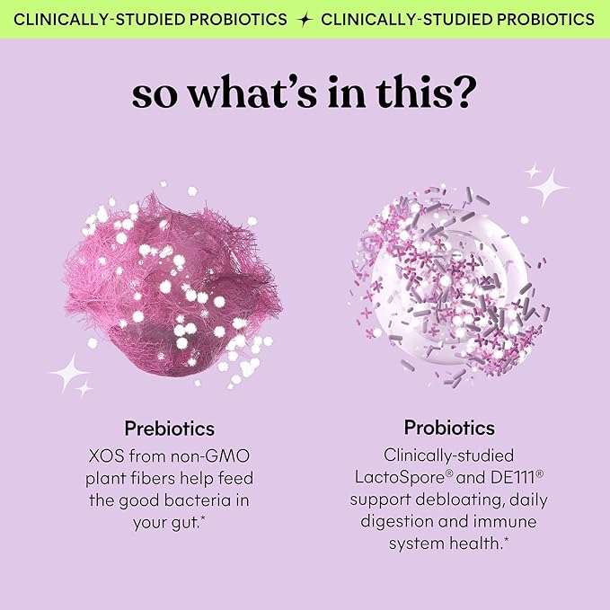 • DAILY GUT HEALTH: Feel your best after meals by reducing bloating and gas, aiding digestion and fueling a healthy gut microbiome with 2 clinically-studied probiotics & a powerful prebiotic.*