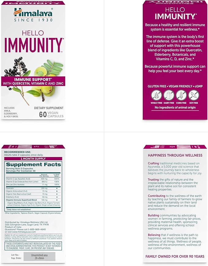 • SAY HELLO IMMUNITY: Because a great, all-in-one immune support supplement can help you feel your best every day, Himalaya Hello Immunity can help give you an extra boost of immune defense and a foundation for wellness.*