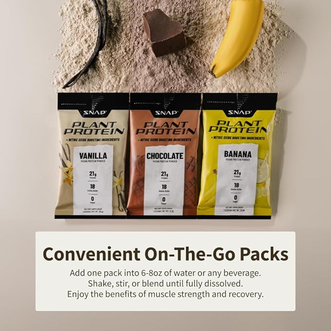 Snap Supplements 100% Plant Based Protein Powder Stick Packs with Nitric Oxide Booster (10 Pack, Variety Pack)
