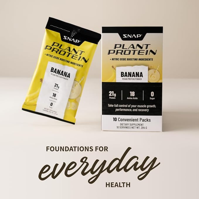 Snap Supplements 100% Plant Based Protein Powder Stick Packs with Nitric Oxide Booster (10 Pack, Banana)