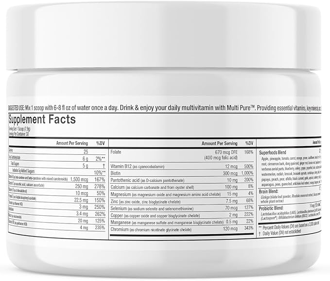 • Reclaim Multi Pure is a flavorful and nutritious powder mix that delivers vitamins, minerals and essential nutrients to help with your body's natural processes.*