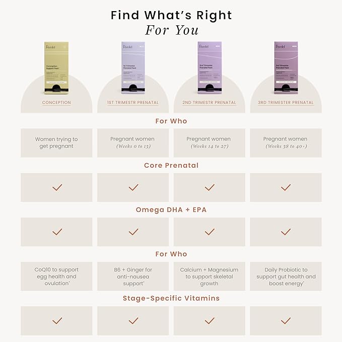 • Targeted Nutrition - We designed these prenatal vitamins for women looking for a 2nd trimester product that can cover their baseline prenatal nutritional needs while easing muscle cramps.* Each pack includes a full-spectrum prenatal vitamin, omega DHA + EPA, and additional calcium and magnesium.