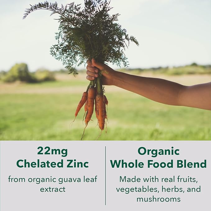 • Whole Food Zinc Supplements for Men and Women - Packed with 55mg Organic Whole Food Blend, and enriched with a variety of organic extracts our zinc formula is a comprehensive source of essential nutrients for skin health, eye health, antioxidant protection and healthy tissue development