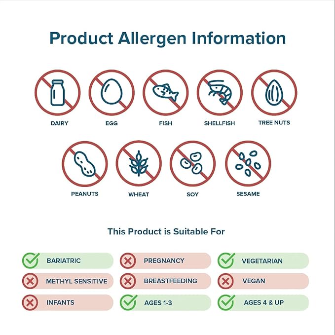 • Free from: Eggs, fish, gluten, GMO, dairy, peanuts, shellfish, soy, sesame, tree nuts, wheat, artificial colors, artificial preservatives