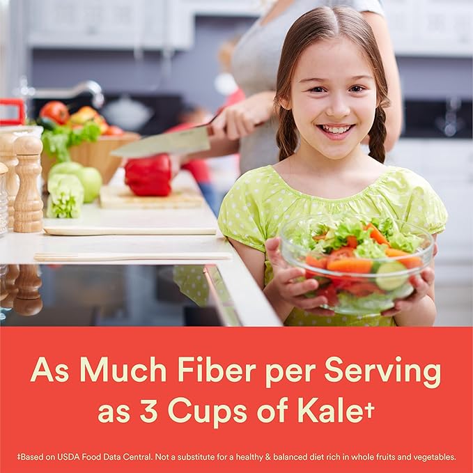 • SAME AMOUNT OF FIBER AS 3 CUPS OF KALE**: US children meet only 45% of the daily value for fiber.** Each gummy serving contains the same amount of fiber as 3 cups of kale** so your child gets more of what they need to maintain regular digestion*