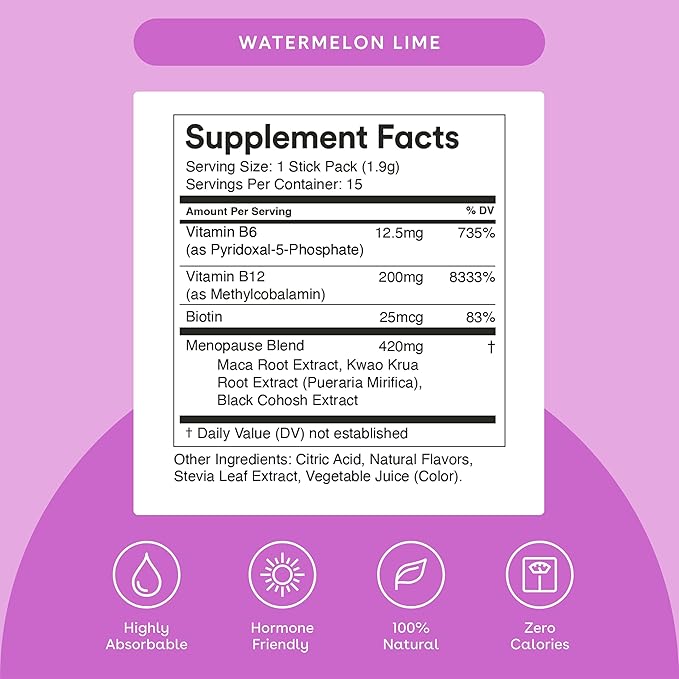 Menopause - Menopause Support Drink Mix - Women's Menopause Supplements - Hormone Balance Multivitamin - With Maca Root & Black Cohosh - Sugar Free - Vegan - 15 Drink Packets - Watermelon Lime