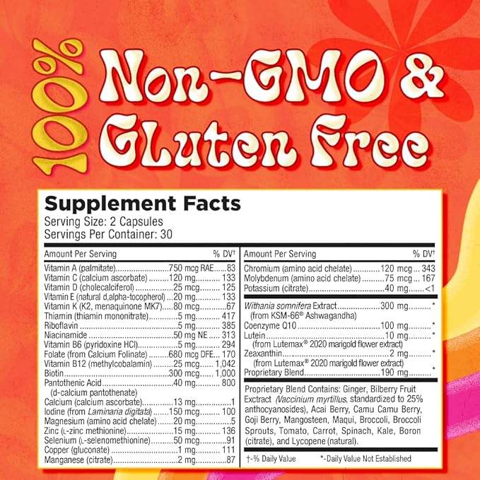 • Cognitive Support: Our Women’s 50+ Multivitamin provides Niacin, Biotin, Lycopene, vitamin D, lutein, and zeaxanthin for healthy cognitive function, cellular health, and eye health.