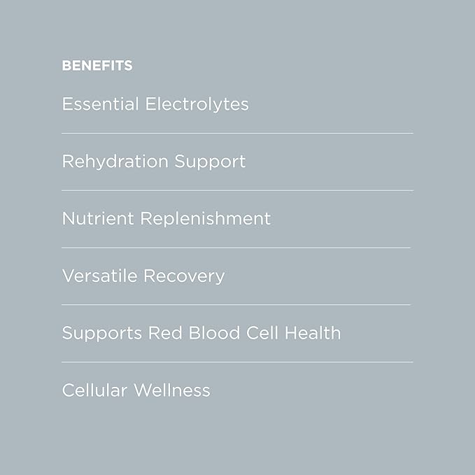 • Electrolyte Powder with Antioxidant Support: These hydration packets are formulated with organic atriplex, barley grass, kelp, and coconut water for a clean, whole-foods hydration experience