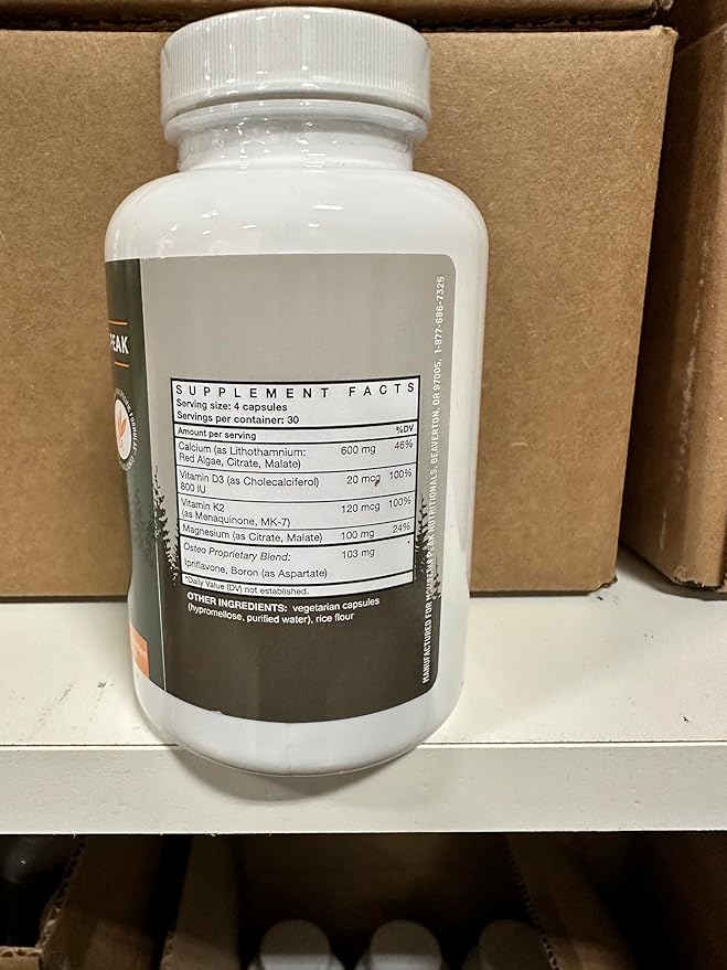 Mountain Peak Nutritionals Osteo Supplement - Organ & Strong Bone Support, Promotes Bone Health - With Vitamins D3, K2, Calcium, and Magnesium - Bone Building & Strengthening (120 Vegetarian Capsules)