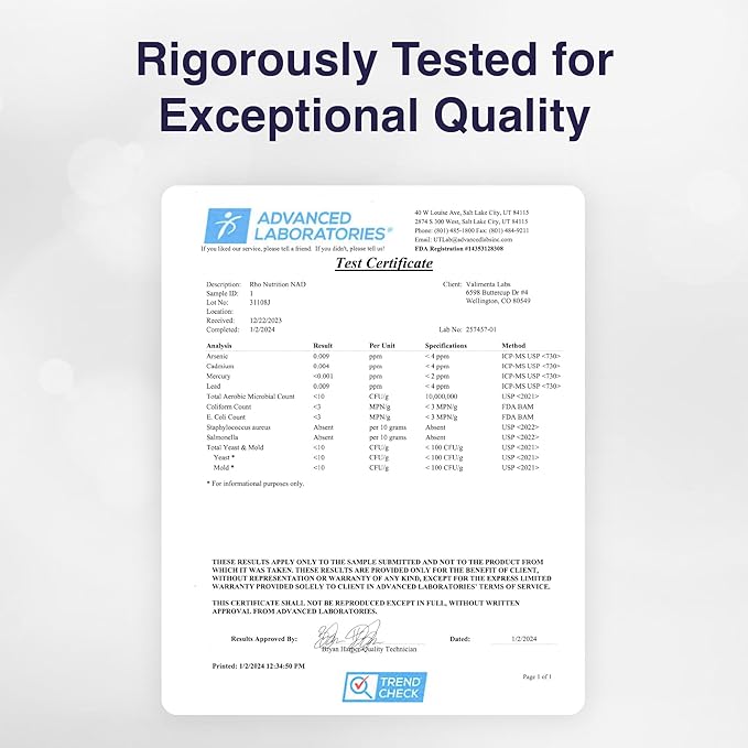 • CONVENIENT LIQUID FORM: Formulated in a liquid form with a light and fresh lemon-essence flavor, Rho Nutrition Liposomal NAD+ is vegan, sugar free, Keto, non-GMO, gluten, dairy & soy-free. Manufactured in the USA in a cGMP facility and third-party tested.