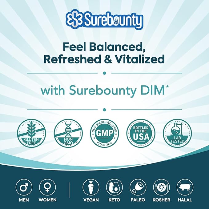 • Premium For All: At Surebounty, every batch of DIM supplement 300mg goes through intensive researches, strict manufacturing practices in a GMP facility in New York, and rigorous tests on ingredient potency, contaminants & heavy metal contents before they're qualified for the market.