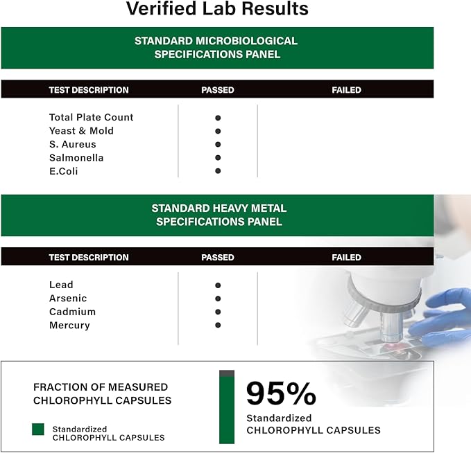 • A Brand You Can Trust: Unlock your health goals with our meticulously lab-tested chlorophyll. Get the most out of your day with our pure chlorophyl that is made in the USA with the highest GMP standards, certified by third-party laboratories to guarantee its quality, purity, and safety.