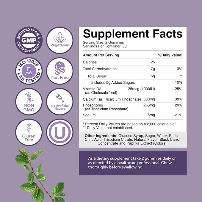 • Chewable Calcium - Experience the power of our calcium gummies with vitamin d3 that are packed full of nutrients and get your daily dose for bone health with our calcium supplement for women and men
