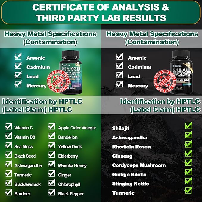 • 【COMPREHENSIVE NUTRITION】 - Boysea's Shilajit and Sea Moss, Each in his own bottle, provide a comprehensive 8-in-1 and all-in-1 formula, respectively. This bundle delivers a diverse range of nutrients, providing a comprehensive and convenient wellness solution.