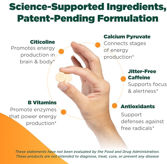 • SCIENCE-SUPPORTED INGREDIENTS: Super B Complex with Thiamin, Riboflavin, Niacin, Pantothenic Acid, Vitamin B6, Vitamin B12, Vitamin C, Calcium Pyruvate, and Choline (Citicoline Sodium) promote enzymes that power energy (ATP) production. Caffeine and L-Tyrosine support focus, alertness, and dopamine production. Antioxidants support the body's natural defenses against free radicals.
