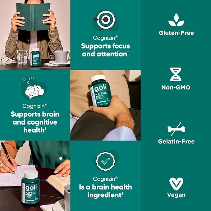 • Goli Matcha Mind Gummies are a perfect addition to your daily routine with Cognizin to help with focus, cognitive health, and attention.