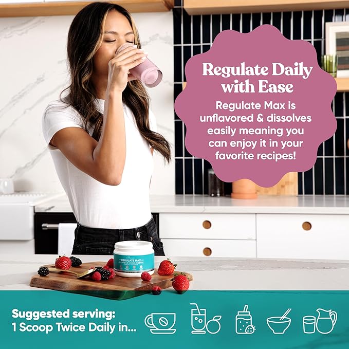 Eu Natural Regulate MAX Myo-Inositol & D-Chiro Inositol Supplement Powder for Women with Vitamin D & Folate PCOS Nutritional Support, Hormone Balance & Fertility Support, Unflavored 60 Servings