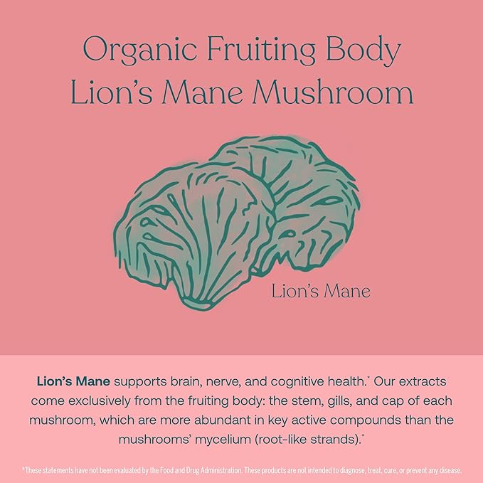 • KEY INGREDIENTS - L-ergothioneine for longevity and brain health. CoQ10 for antioxidant support. 150% DV vegan Vitamin D3 for bone & immune health. Coenzyme B Vitamins for energy. Fruiting body organic lion’s mane with bacopa for memory support.