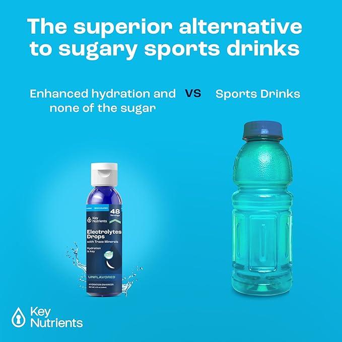 • Rapid Rehydration with Trace Minerals Liquid Electrolytes - Fatigued? Jet-lagged? Having muscle cramps? You need a balanced mix of electrolytes to keep your body energized and hydrated. Key Nutrients mineral drops hydrates faster and better than water alone. Suitable for all diets and lifestyles, everyone can enjoy our on-the-go daily electrolytes to power through whatever life throws.
