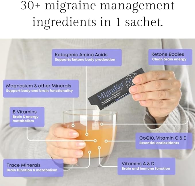 • WORLD’S FIRST MIGRAINE MEDICAL FOOD: MigraKet is designed for the dietary management of migraine, nourishing the brain with essential nutrients, including ketone bodies, electrolytes, antioxidants, vitamins, and amino acids.