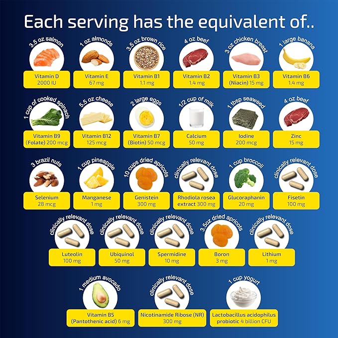 • OPTIMIZED NUTRIENT STACK: Our Essential Capsules blends everything you need without the fluff. It is designed to revolutionize your approach to health and wellness. Crafted with 26 critical multi-nutrients per serving, without additives and filler. Importantly, you’re getting clinical trial level doses in each serving.
