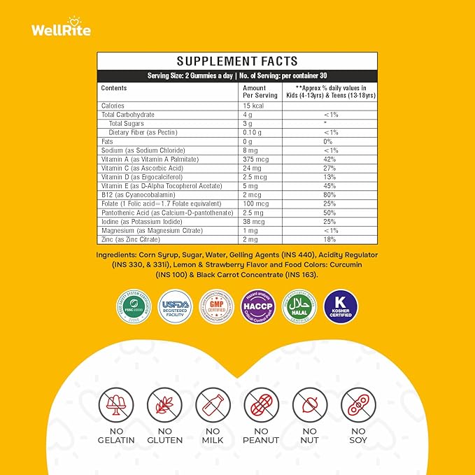 Kids Multivitamin & Mineral Gummy Vitamins which Provide Overall Development & Growth, 60 Count, Lemon & Strawberry Flavored, Vegan, Gelatin Free, Gluten Free, Nut Free
