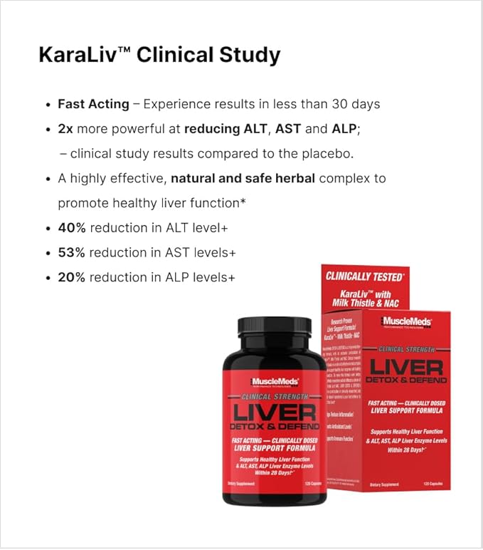 • LIVER DETOX & DEFEND is efficaciously dosed providing 1,000mg KaraLiv, 280 mg Milk Thistle and 600 mg NAC when taken twice daily.