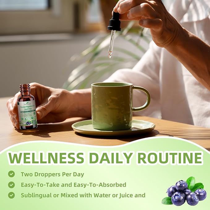 • 【EASY TO TAKE AND EASY TO ABSORB】Not a fan of swallowing large pills? This liquid potassium magnesium supplement is made available in liquid form. Just take 2 full droppers in your preference drink, or you can place several drops directly under your tongue. 2 droppers per day or as recommended by your doctor. AND liquid extracts in blueberry flavor are preferred to the capsules because they are delicious and processed through the digestive system faster and absorbed in the bloodstream faster than other forms of supplements. Further, studies show that your body absorbs a higher percentage of minerals and vitamins that come in liquid form.