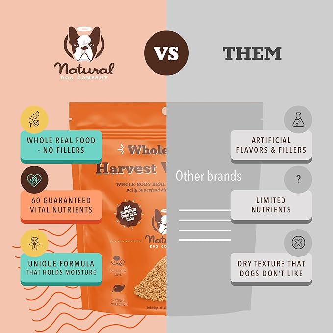 • DIGESTIVE RELIEF SOLUTION: Is your dog struggling with an upset stomach? Our Harvest Vegetable Granules offer the perfect dog digestive health supplement, featuring whole food ingredients and 60 essential nutrients. This dog digestive health supplement promotes smoother digestion, reduces bloating and soothes sensitive stomachs. Ensure your pet enjoys mealtime without issues.