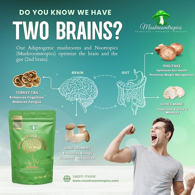 Mushroomtropics Matcha Mush Delight Mushroom Coffee Alternative, 2,800mg Adaptogenic Mushroom Blend and Fiber per Serving. for Better Energy, Bloating Relief, Mental Clarity and Immunity 30 Servings