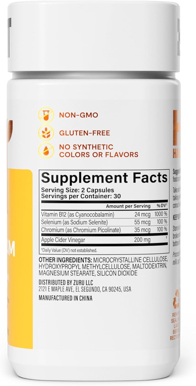 • WHAT’S INSIDE: Vitamin B12, Selenium, Chromium, Apple Cider Vinegar.