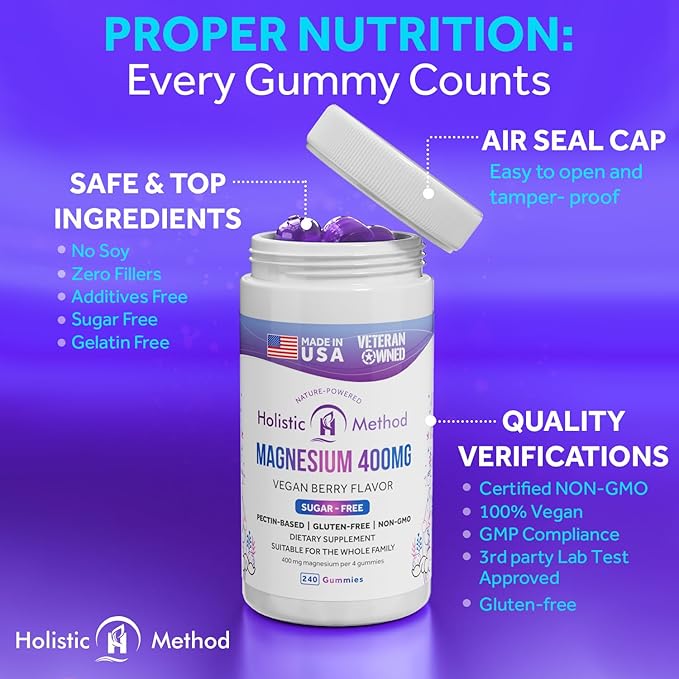 • Ideal Magnesium Gummy for Adults - Pectin, gluten-free, and sugar-free, these gummies can fit any diet and will not have a significant daily caloric impact.