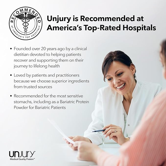 • Trusted Since 2002: Unjury is loved by patients and practitioners because we choose superior ingredients from trusted sources. Unjury is often recommended for the most sensitive stomachs, including as a Bariatric Protein Powder for Bariatric Patients.