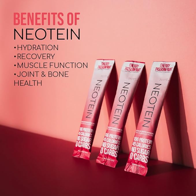 • ELECTROLYTE DRINK MIX + PROTEIN: Formulated with essential electrolytes for rapid hydration, each Neotein packet also delivers 10g of protein. Plus collagen to support bone and joint health. With just 45 calories, Neotein provides a light yet effective way to replenish without weighing you down.