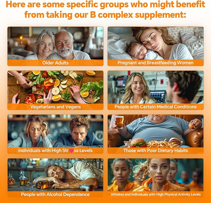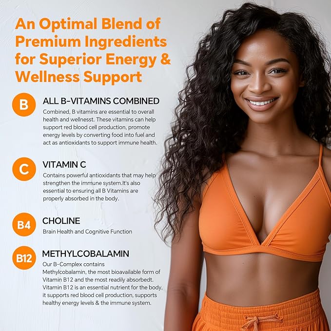 • 🍑Vegan B Complex Supplements - Provides essential B vitamins sourced from plants, making it suitable for vegans and vegetarians.Supports energy metabolism, helping combat fatigue and increase vitality.Contributes to the production of neurotransmitters, which can help improve moo-d and reduce an-xiety.Strengthens the immune system, helping the body defend against infections and illnesses.Supports healthy skin and hair by promoting cellular turnover and hydration.