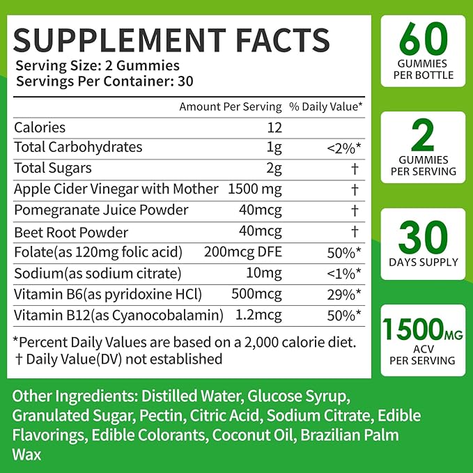 • Say goodbye to the harsh taste of traditional apple cider vinegar with our soft and chewy keto acv gummies. Effortlessly incorporate essential vitamins and nutrients into your daily routine.Made with a pectin base, they are gluten, soy, gelatin, and artificial sweetener-free.