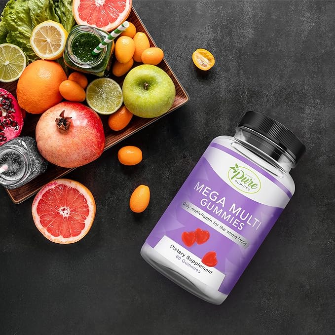 Pure By Nature Mega Multi Gummies, Natural Flavored Multi Vitamin Gummies for Women & Men, Dietary Supplement, Multivitamin for Men with Vitamins A, D2, C, E, K, Biotin, Folic Acid (60 Count)