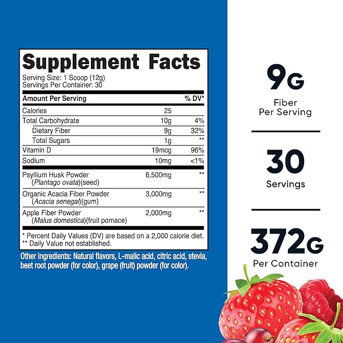 • 30 Servings per Bottle: Each bottle contains 30 servings of our easy-to-mix powder, offering a convenient and cost-effective way to incorporate daily fiber into your diet.
