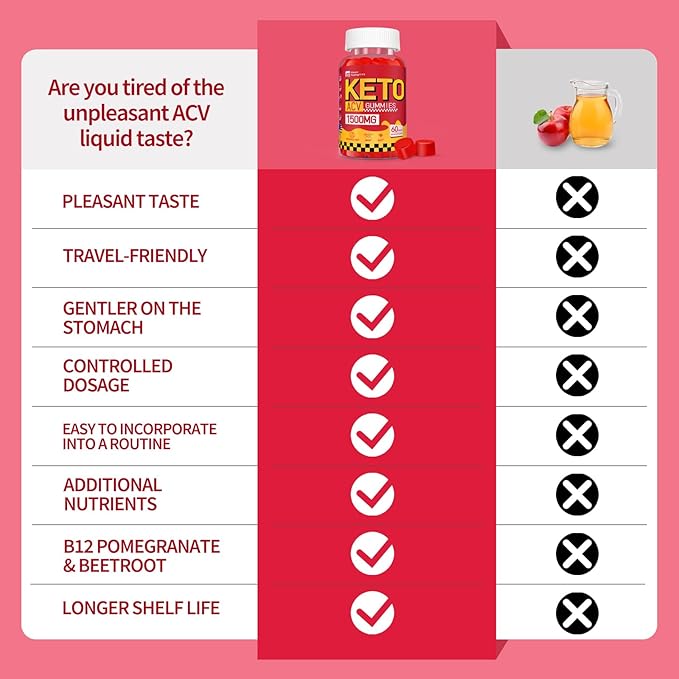 • KETO ACV GUMMIES - Our advanced keto ACV gummies help you achieve your goals by promoting a feeling of fullness and reducing cravings for high-calorie foods. With enhanced metabolism and thermogenesis, these keto gummies make your journey more efficient. Combined with healthy eating and regular exercise, you’ll experience a faster entry into ketosis and natural detoxification.