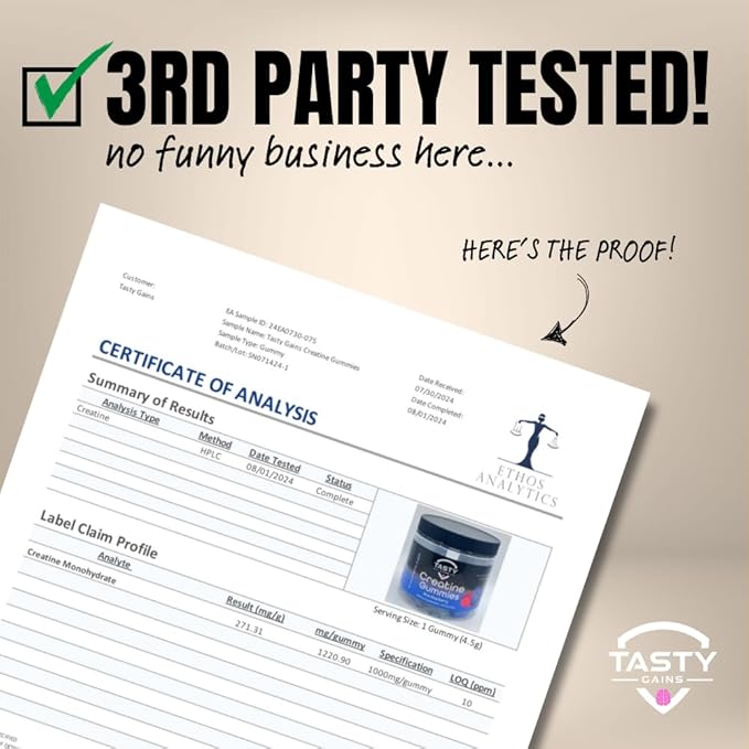 • Risk-Free Promise - Tasty Gains Creatine Gummies comes highly recommended by many, but the final judgment is yours. If you’re not completely satisfied, we’ll refund your entire order - no questions asked.