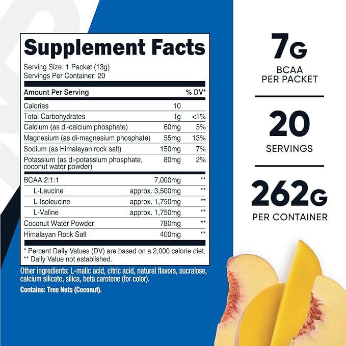 Nutricost BCAA+ Hydration Peach Mango Flavor (20 Stickpacks) - Branched Chain Amino Acids with Hydration Complex - Gluten-Free, Non-GMO