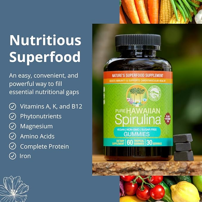 • Get your daily dose of one of nature’s original superfoods with Pure Hawaiian Spirulina; We grow it naturally on our farm in Hawaii and pack each tablet with essential nutrients for overall health