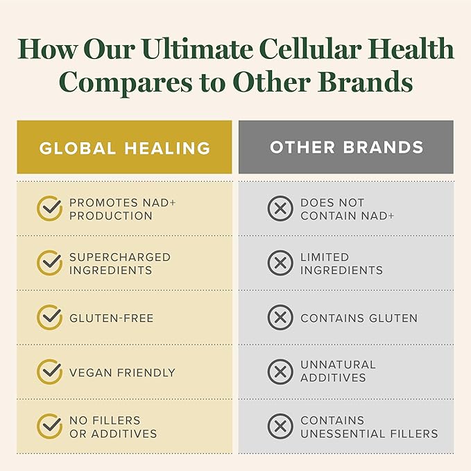 Global Healing Ultimate Cellular Health -NAD Supplement for Women and Men, Cellular Repair, Includes Resveratrol for Anti-Aging, Supports NAD Plus, Alternative to Nicotinamide Riboside- 60 Capsules