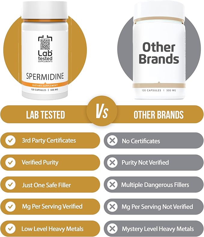 • Why Spermidine 3HCL? It is the cleanest form of Spermidine to consume, as opposed to spermidine from wheat/rice germ you don't have to worry about high levels of heavy metals or unwanted gluten.